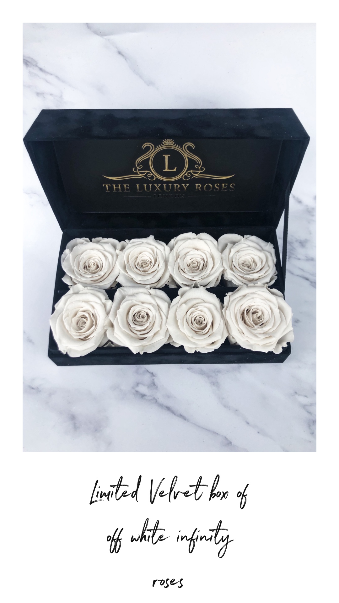 Limited velvet box of off white infinity roses