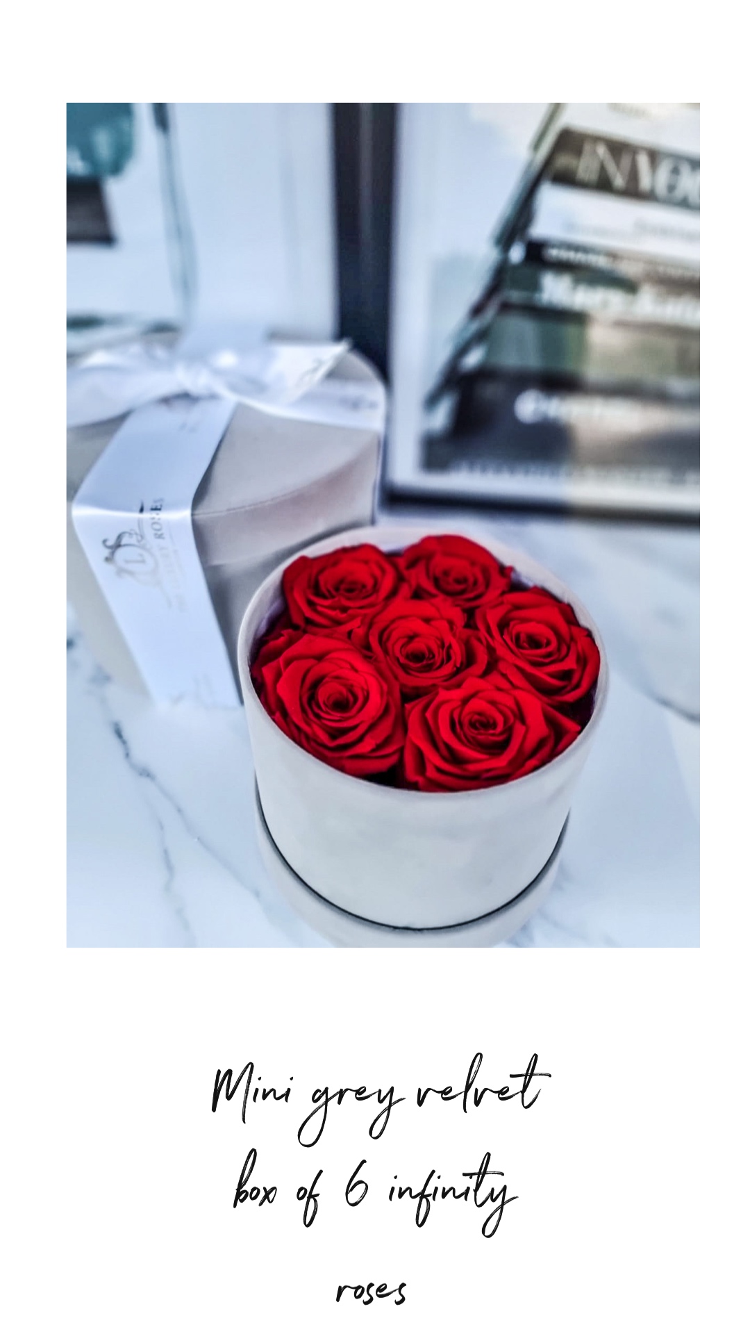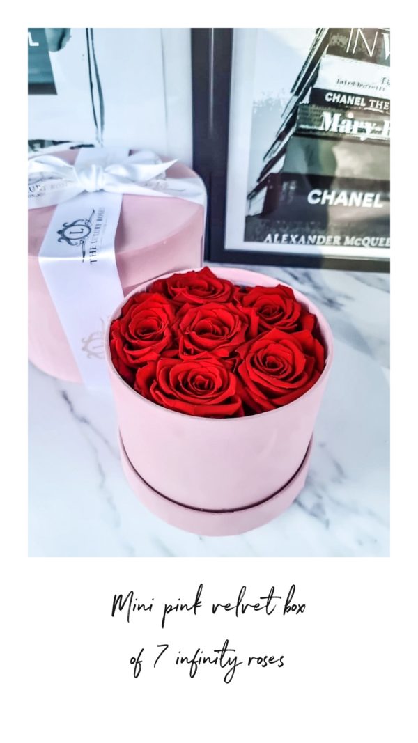 Be the first to review “Mini grey velvet box of 6 infinity roses”